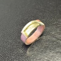 Het eerste deel op de ring zit er op en is gesoldeerd door middel van hard soldeer. De ring ziet er nu niet fraai uit. Dit komt omdat deze voorzien is van een vloeimiddel om het hechten te bevorderen. In een later stadium wordt al het overtollige vloeimiddel verwijderd.