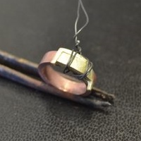 Ook het tweede deel wordt er opgesoldeerd. Om te voorkomen dat de twee onderdelen aan elkaar worden gesoldeerd in plaats van alleen aan de ring, heb ik het tweede deel eerst met een ijzerdraadje gefixeerd.