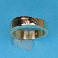 Tenslotte heb ik een gladzetting gemaakt met een briljant. De briljant hoeft door deze techniek niet gelijmd te worden, een ware meesterzet. Hier ziet u het eindresultaat: een moderne gouden ring met briljant voor een zeer tevreden klant.